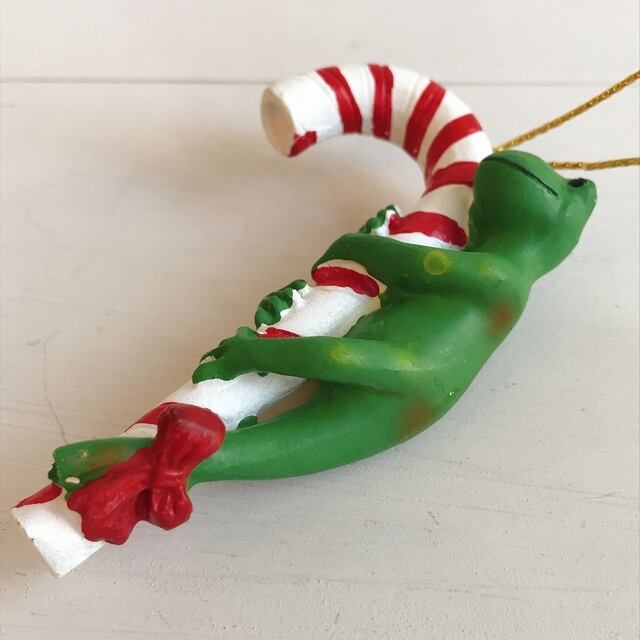 可愛いゲッコーがキャンディーケインにくっついているオーナメント。