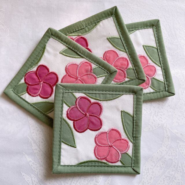 ハワイアンキルトコースター【プルメリア】4枚セット / ハワイ直輸入