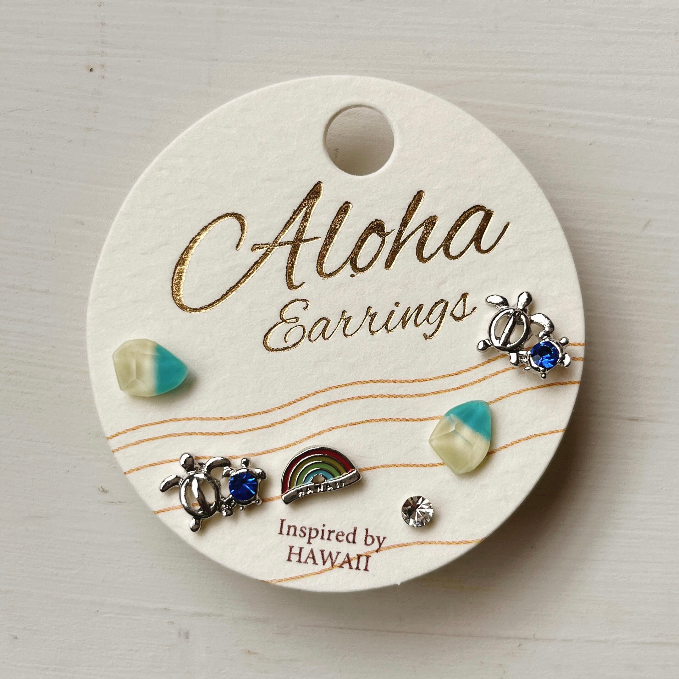 ハワイでは幸運を運ぶ守り神といわれているHONU(海亀)をモチーフにしたピアス 6個セット。