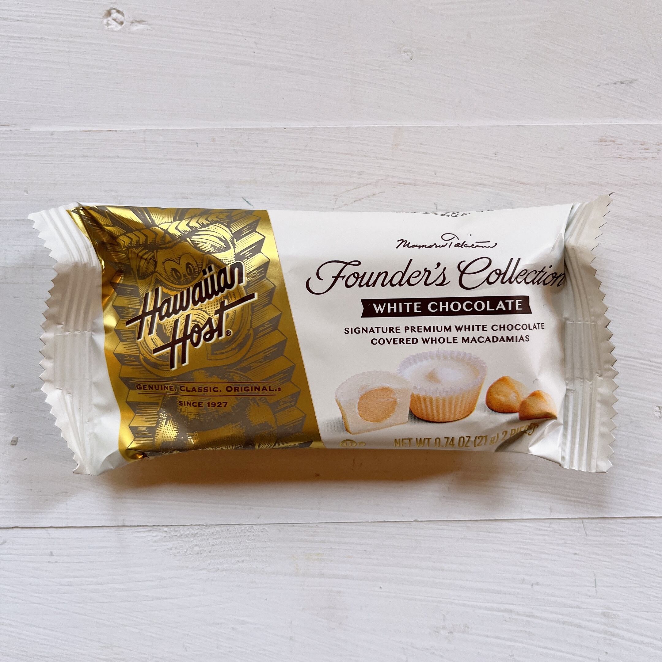 厳選されたマカデミアナッツを独自のドライロースト製法で焼きあげ、ミルキーなホワイトチョコレートで包みました。油・添加物を使用せずドライローストしたナッツがカリッと香ばしく、クリーミーなホワイトチョコとの相性は絶妙。