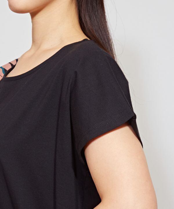 リラックスしつつも女性らしく着られるボックス型のデザインは、二の腕やお腹を目立たせず美しい着こなしを演出します。
