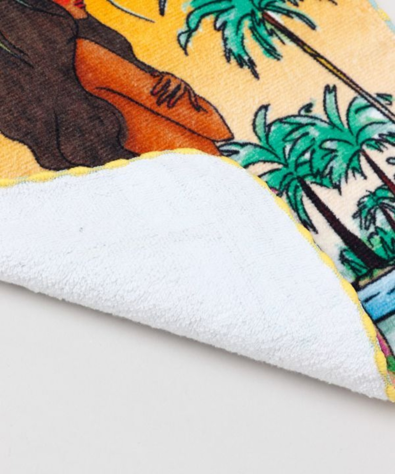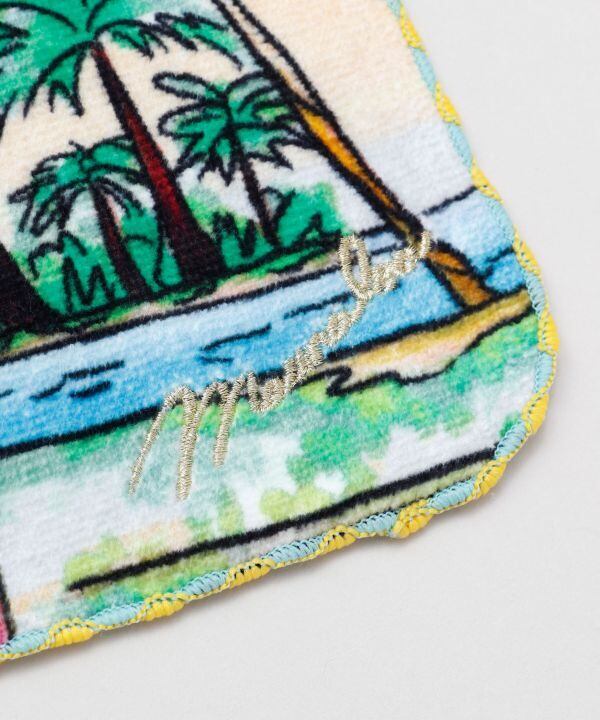 イラストレーター、マイティ・スーのイラストをプリントしたタオルハンカチ。